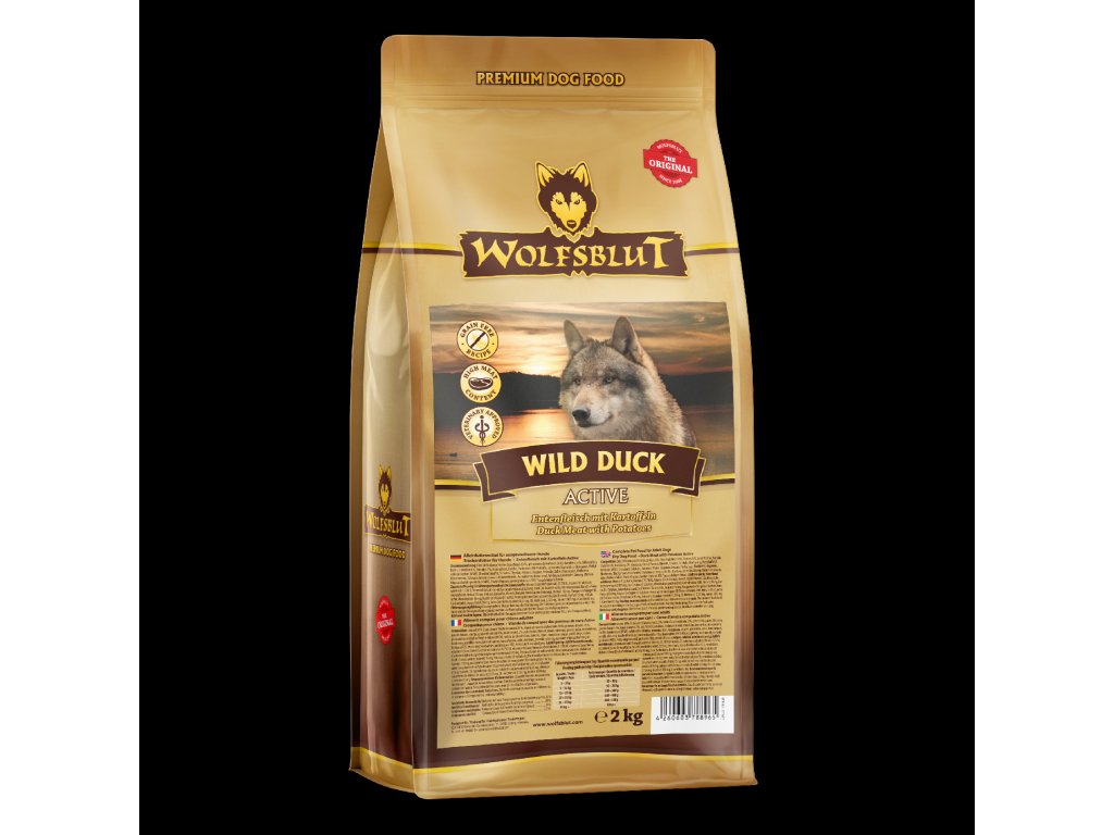 Vlci loví svou kořist od Skalistých hor Severní Ameriky, arktické tundry, hor a lesů Evropy až po pouště a stepi střední Asie. To jim dodává maso a vnitřnosti bohaté na živiny, ale také zeleninu, ovoce, bobule, kořeny a bylinky z obsahu žaludku kořisti. Obilí zde není zahrnuto. Vlk tak přijímá potřebné vitamíny, minerály, stopové prvky, enzymy a druhotné rostlinné látky. Vzhledem k tomu, že vlk je předkem všech psů, naše suché krmivo pro psy Wolfsblut je založeno na přirozených stravovacích návycích vlka. Obsahuje hodně masa nebo ryb v kombinaci se superpotravinami, které obsahují hodnotné ingredience – stejně jako v přírodě, bez obilovin. Náš výběr výjimečných druhů masa a superpotravin bohatých na živiny vychází z vlčích biotopů a jejich pestré stravy. Wolfsblut nabízí každému psovi druhově vhodnou a originální stravu a díky rozmanitosti odrůd si každý najde něco, co snese. Receptura suchého krmiva WILD DUCK ACTIVE kombinuje výživu vlků s nejnovějšími vědeckými poznatky o správné výživě psů.