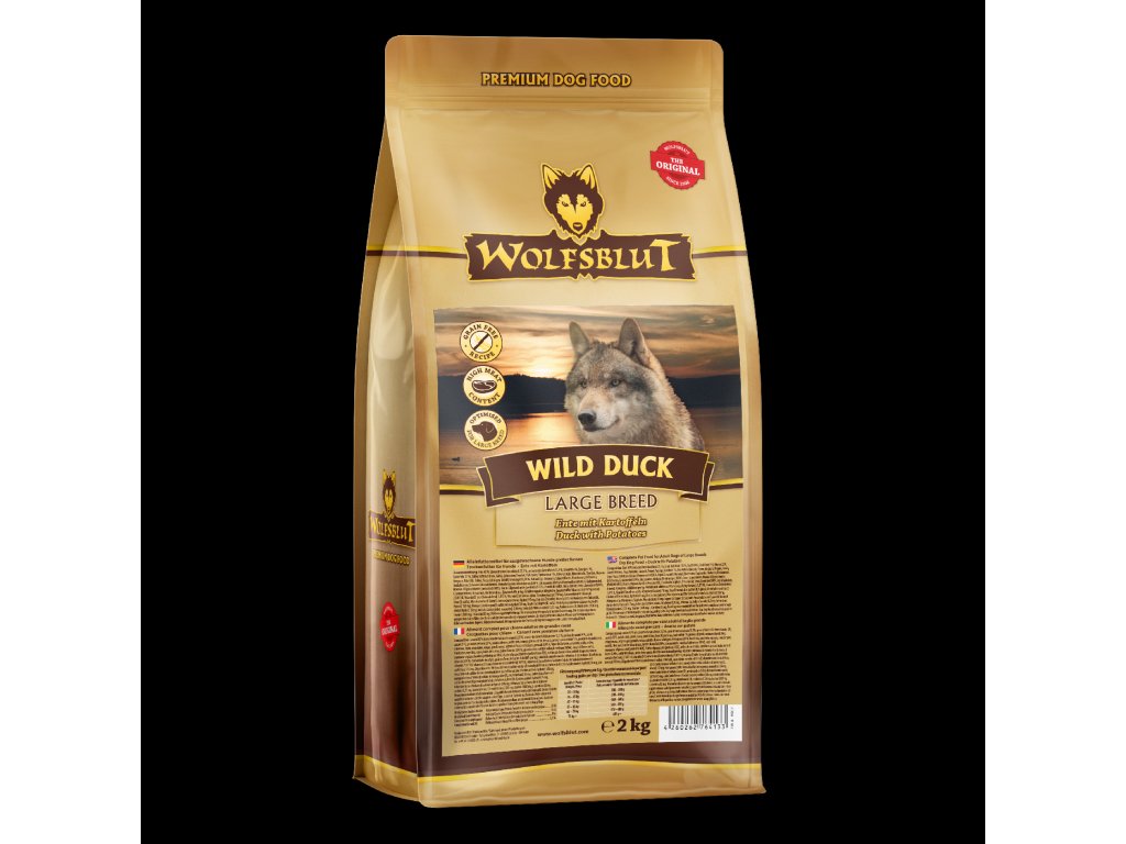 Vlci loví svou kořist od Skalistých hor Severní Ameriky, arktické tundry, hor a lesů Evropy až po pouště a stepi střední Asie. To jim dodává maso a vnitřnosti bohaté na živiny, ale také zeleninu, ovoce, bobule, kořeny a bylinky z obsahu žaludku kořisti. Obilí zde není zahrnuto. Vlk tak přijímá potřebné vitamíny, minerály, stopové prvky, enzymy a druhotné rostlinné látky. Vzhledem k tomu, že vlk je předkem všech psů, naše mokré krmivo Wolfsblut je založeno na přirozených stravovacích návycích vlka. Obsahuje hodně masa nebo ryb v kombinaci se superpotravinami, které obsahují hodnotné ingredience – stejně jako v přírodě, bez obilovin. Náš výběr výjimečných druhů masa a superpotravin bohatých na živiny vychází z vlčích biotopů a jejich pestré stravy. Wolfsblut nabízí každému psovi druhově vhodnou a originální stravu a díky rozmanitosti odrůd si každý najde něco, co snese. Jednotlivé složky potravy WILD DUCK byly sestaveny veterináři tak, aby vyhovovaly přirozenému chování vlka kořisti a poznatkům o holistické výživě psů. Suché krmivo WILD DUCK kombinuje vysoce kvalitní zdroje bílkovin a lehce stravitelné sacharidy, které jsou dokonale přizpůsobeny přirozeným potřebám vašeho psa. Kachní maso poskytuje cenné bílkoviny a je zvláště šetrné pro psy s citlivým žaludkem. Brambory jsou výborným bezlepkovým zdrojem sacharidů a podporují stabilní trávení.